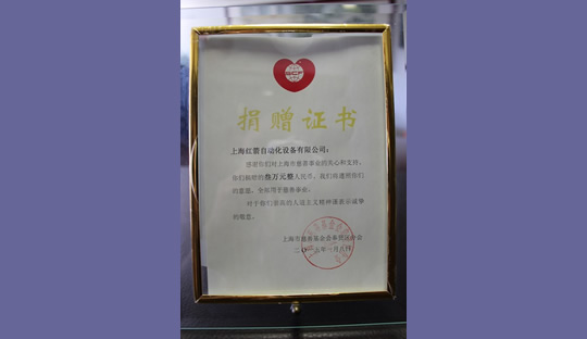 2015年,上海紅箭自動化設(shè)備有限公司為上海市慈善基金會捐款